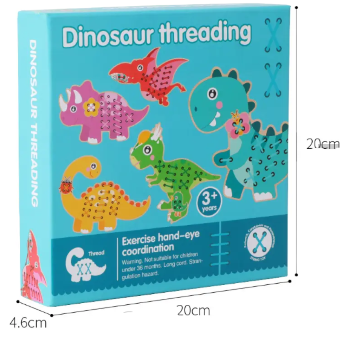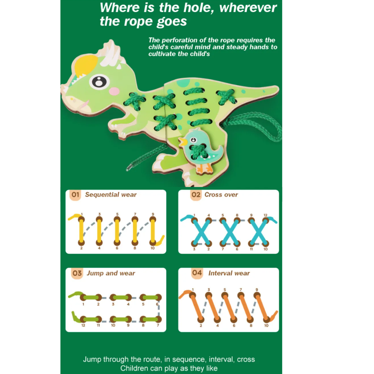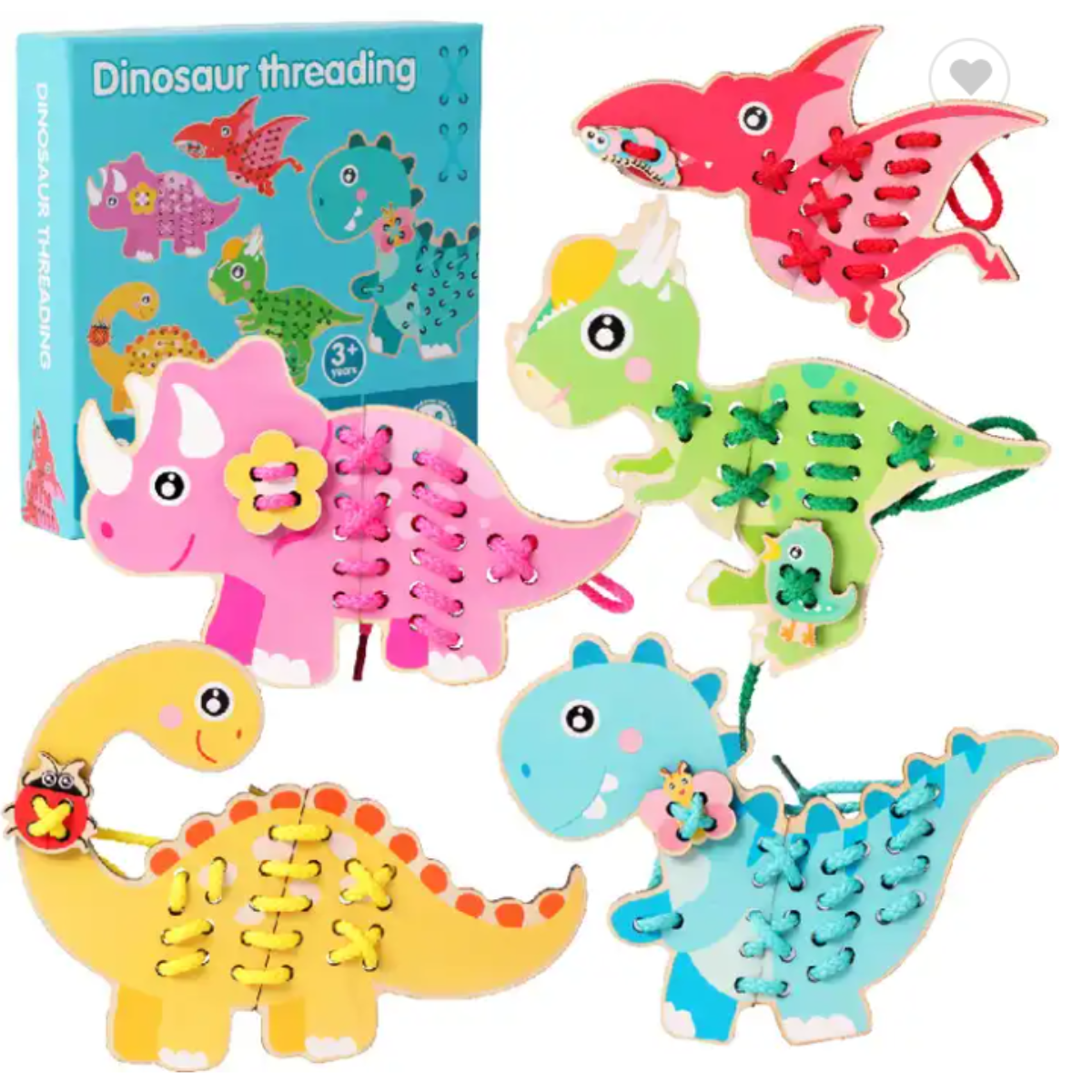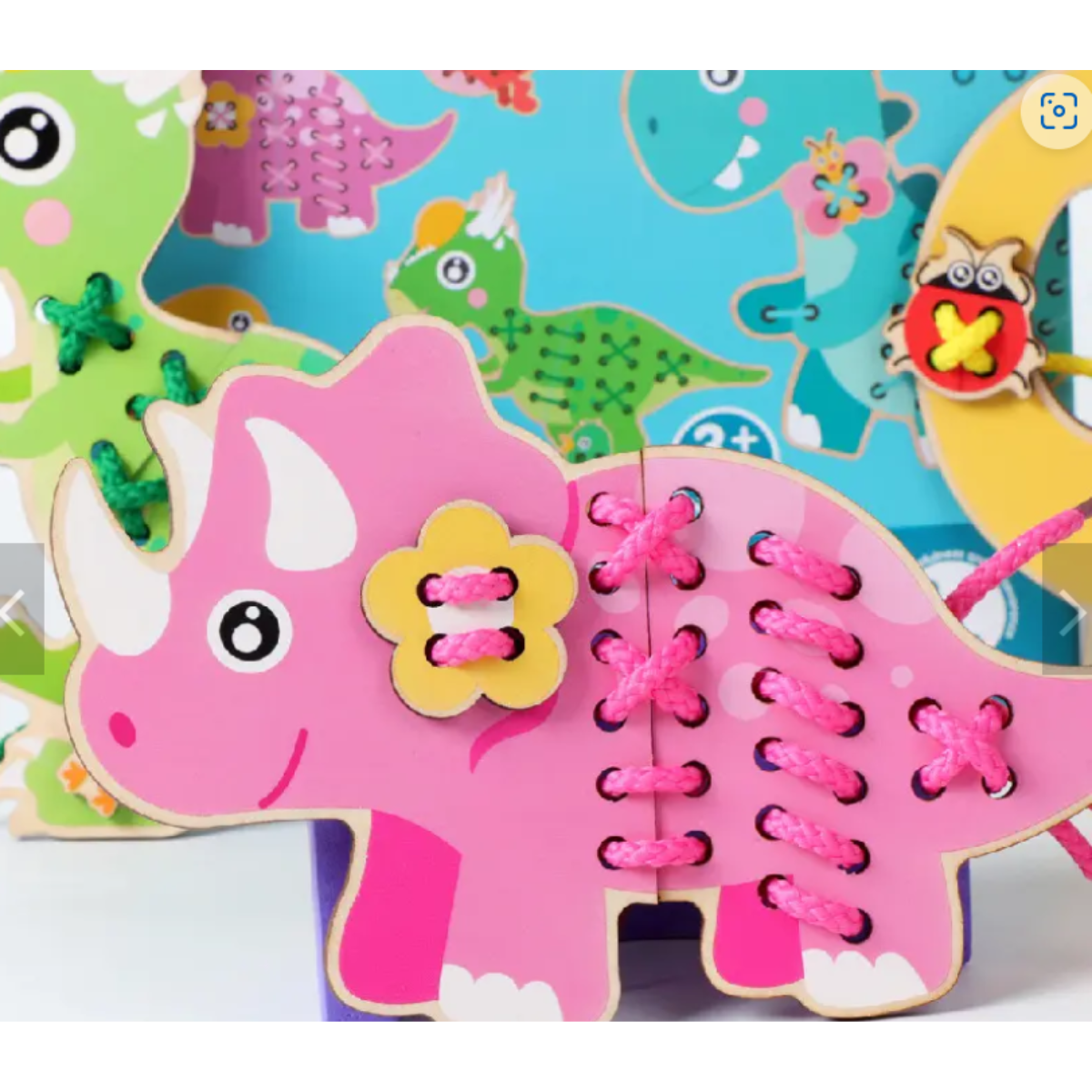 Juego de placas de dinosaurios Montessori para enlazar con agujetas