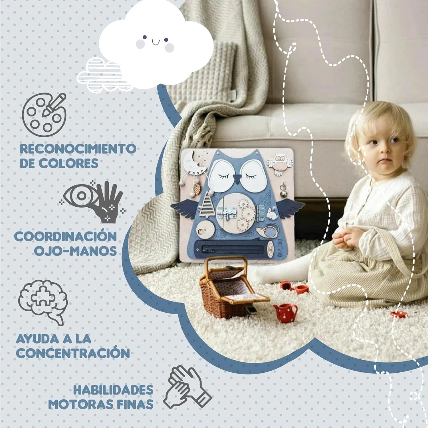 Juguete Tablero Montessori Sensorial Didáctico Educativos Buho
